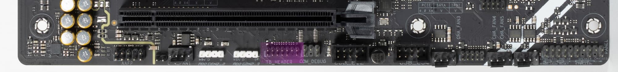 Все 28 линий PCIe оказались занятыми (20 PCIe 4.0 + 8 PCIe 3.0). В чипсете Z790 связь с аудиокодеками старшего звена типа Realtek ALC4080/4082 идет через USB-порт, а вот для более старых поколения оставлена поддержка через канал HDA, поэтому в данном случае ALC4080 требует 1 линию USB 2.0. Также линия USB 2.0 зарезервирована на поддержку беспроводного адаптера. А вот ASMedia ASM1074 (USB 3.2 Gen1 хаб) для своих нужд потребляет сигнальную линию уровня USB 3.2 Gen2. Детально об этом ниже в разделе USB-портов.