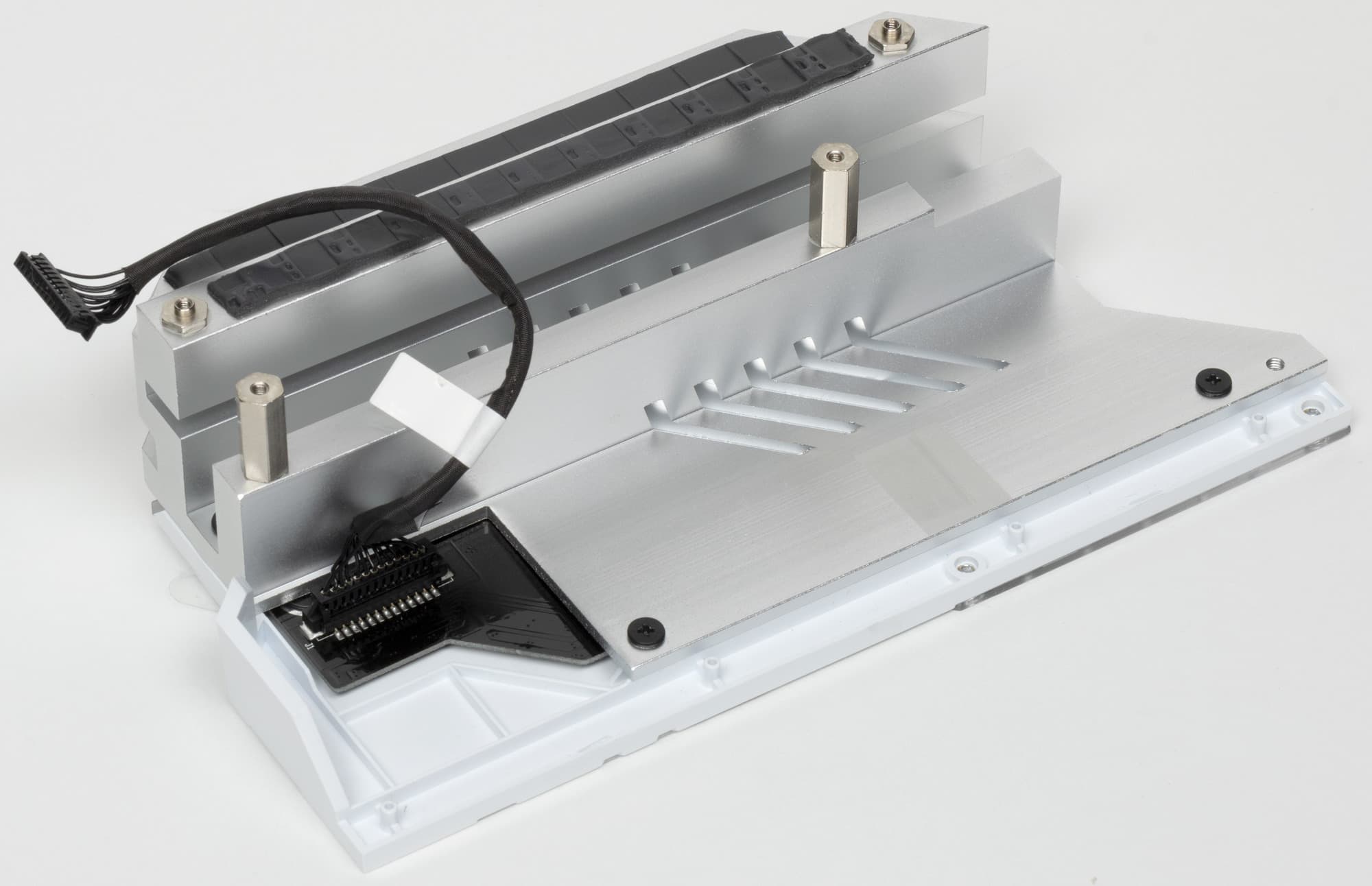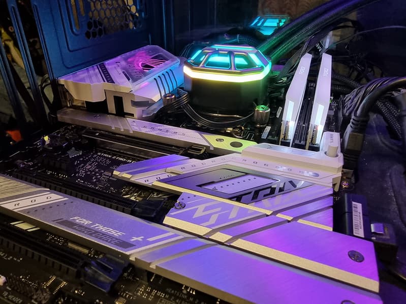 Радиатор VRM, идущий вдоль заднего блока портов, имеет подсветку.