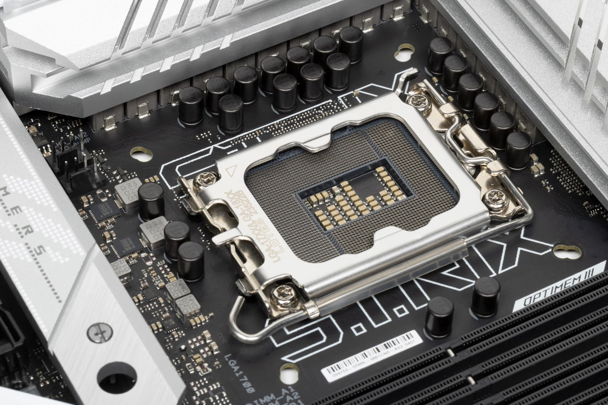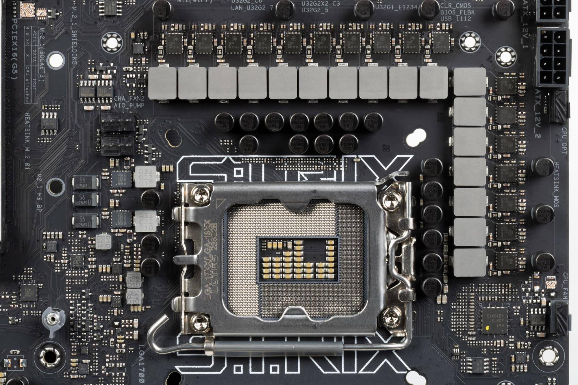 Матплата Asus ROG Strix Z790-A Gaming WiFi D4 поддерживает процессоры Intel Core 12/13-го поколений, выполненные под разъем (сокет) LGA1700. Для совместимости со старыми СО у данной платы имеются овальные отверстия вокруг сокета.