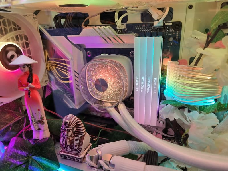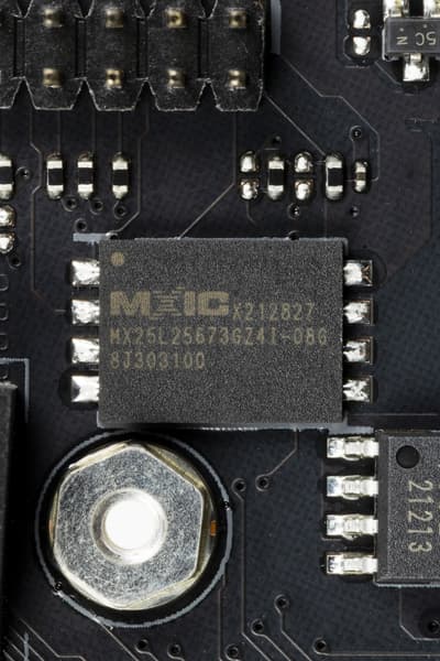 Данная модель работает со старой доброй памятью DDR4, обеспечивая хорошую преемственность при апгрейде ПК. У этой платы 17 портов USB разных видов (включая 2 самых быстрых USB 3.2 Gen2×2, а также 3 USB 3.2 Gen2), 3 слота PCIe х16 (один из которых подключен к процессору 16 линиями PCIe 5.0, а второй и третий подключены к чипсету и работают в режиме х4), 1 слот PCIe x1, 4 слота M.2 (один из них подключен напрямую к процессору линиями PCIe 4.0, три других подключены к чипсету Z790 тоже линиями PCIe 4.0), 4 порта SATA и 8 разъемов для вентиляторов. В принципе, для среднего уровня — просто отличная поддержка периферии. Также стоит отметить наличие двух сетевых контроллеров: проводного (2,5-гигабитного) и беспроводного (Wi-Fi 6).
