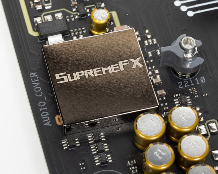 Мы знаем, что почти во всех современных материнских платах звуковым кодеком является продукт от Realtek, обеспечивающий вывод звука по схемам до 7.1, в последнее время это стал ALC4080 с характеристиками 32 бит / 384 кГц. Проектировщики Asus подчас скрывают маркировку кодека с помощью крышки, декларируя ее, как защиту SupremeFX.
