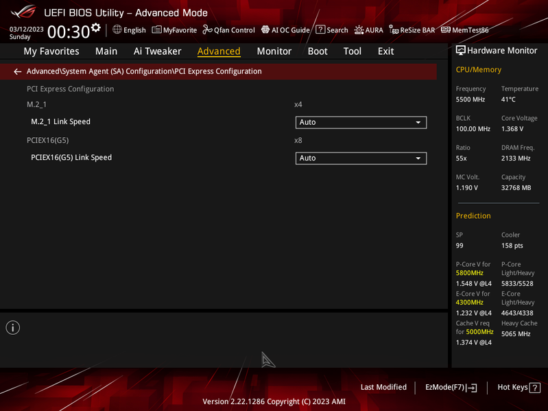 Теперь посмотрим выше на то, как работают процессоры в данной конфигурации. У CPU 12/13-го поколений всего 20 линий PCIe, 4 из них версии PCIe 4.0 отведены на порт М.2 (M2_1). Оставшиеся 16 линий PCIe 5.0 идут на единственный PCIe x16_1, так что вариантов переключений просто физически нет.