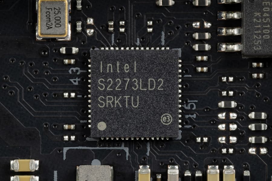 Материнская плата оснащена средствами связи прилично. Имеется один скоростной Ethernet-контроллер: Intel I226-V, способный работать по стандарту 2,5 Гбит/с.