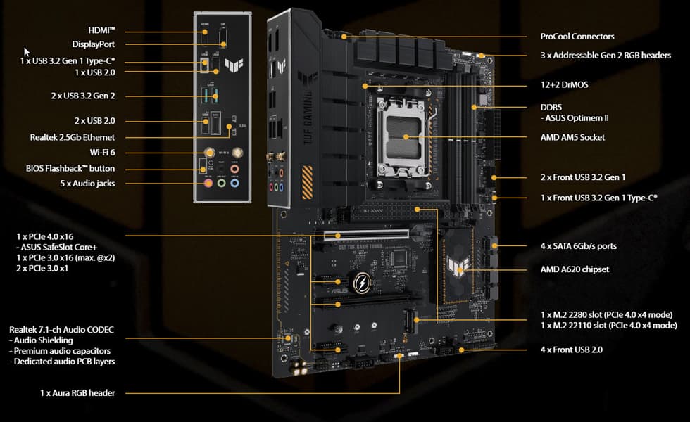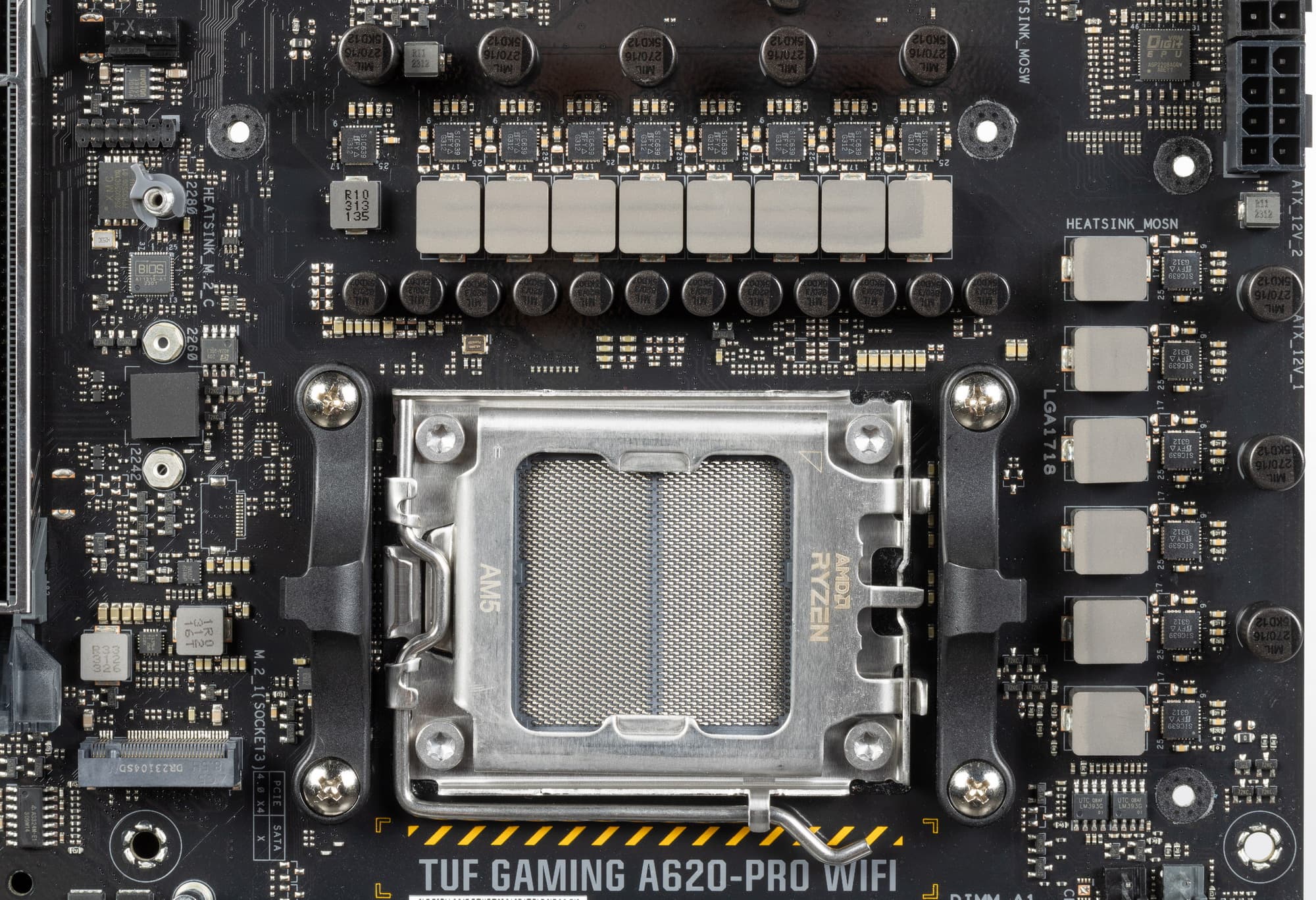 Asus TUF Gaming A620-Pro WiFi поддерживает процессоры AMD поколения 7000/8000, выполненные под разъем (сокет) AM5.