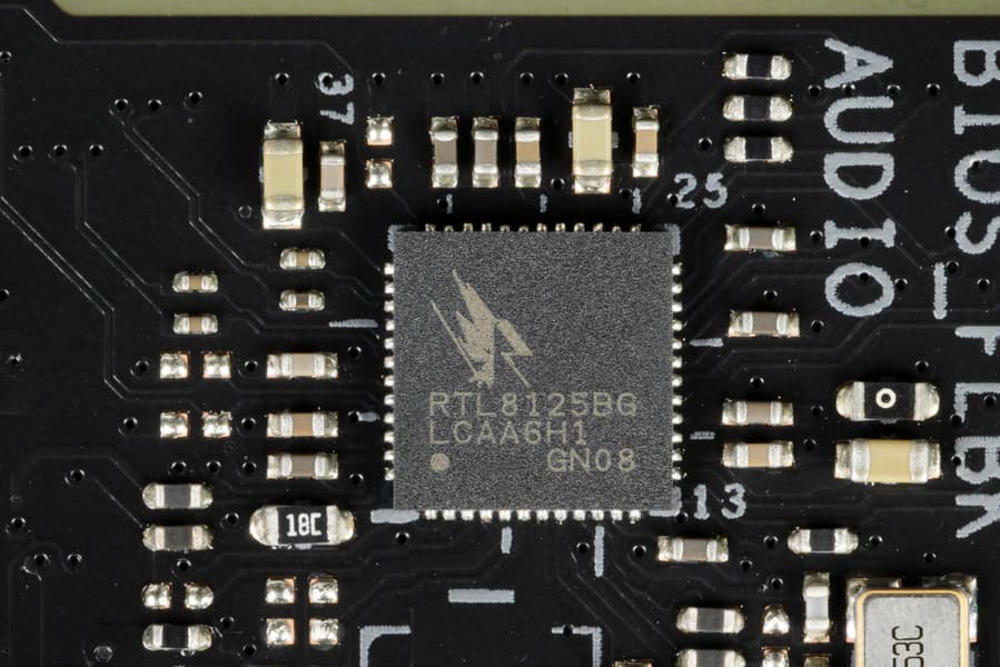Материнская плата оснащена средствами связи прилично. Имеется один скоростной Ethernet-контроллер: Realtek RTL8125BG, способный работать по стандарту 2,5 Гбит/с.