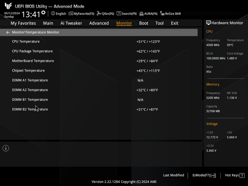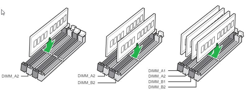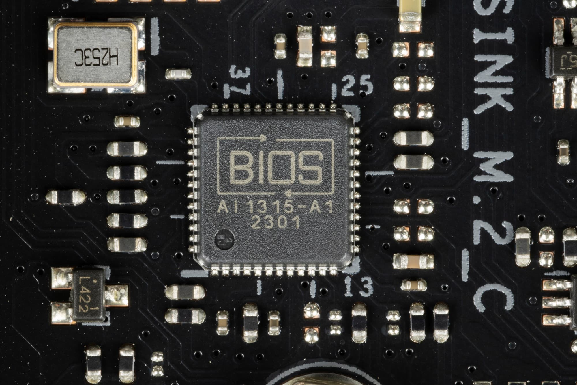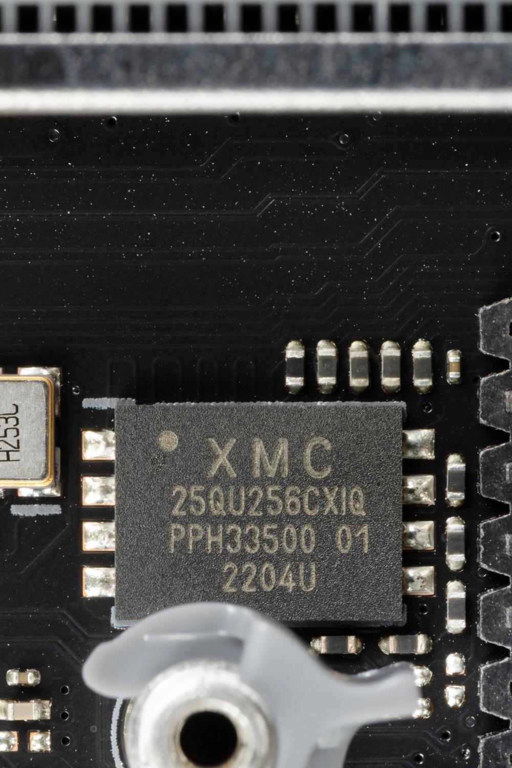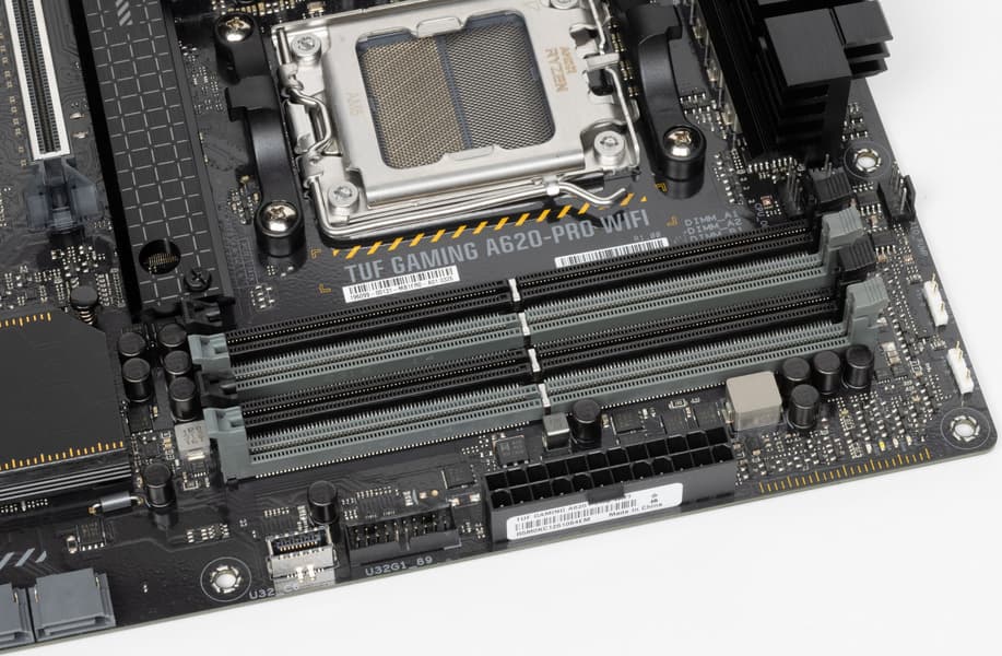 Для установки модулей памяти на плате имеется четыре DIMM-слота (для работы памяти в Dual Channel в случае использования всего 2 модулей их следует устанавливать в А2 и B2). Плата поддерживает небуферизованную память DDR5, а максимальный объем памяти составляет 192 ГБ. Поддерживаются профили XMP и Expo.