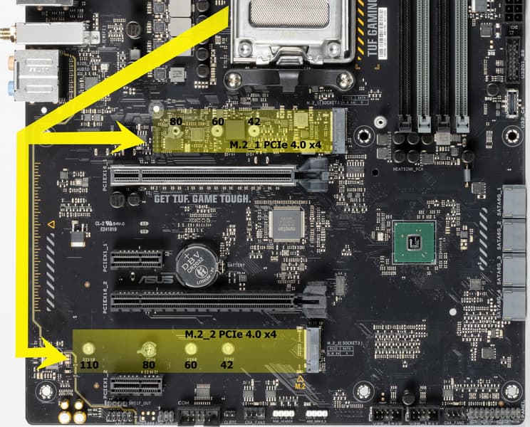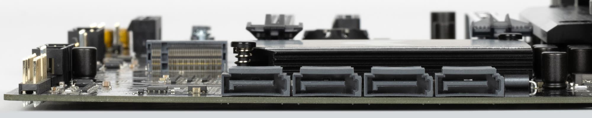 Слот M.2_1 имеет радиатор, второй слот — без охлаждения.