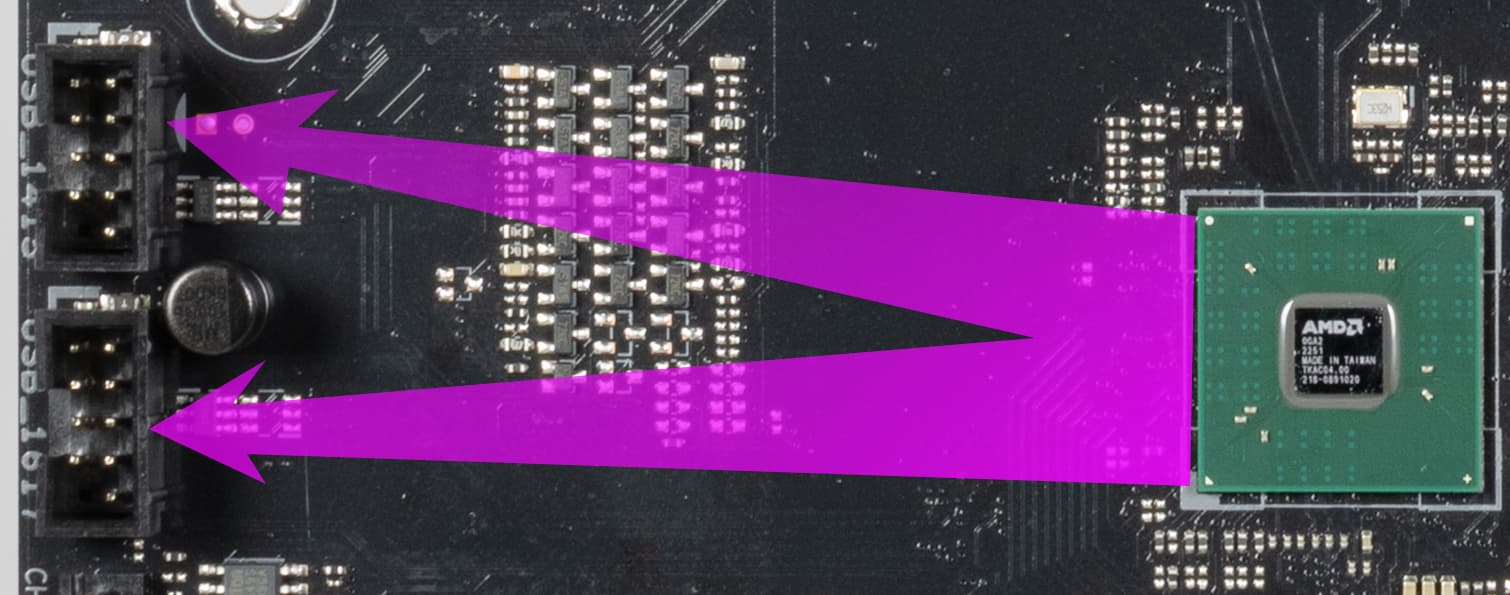 Повторим: чипсет A620 способен реализовать максимально: 4 порта USB 3.2 Gen2/1, 6 портов USB 2.0. Процессор Ryzen 7000 способен реализовать до 4 портов USB 3.2 Gen2 и 1 USB 2.0.