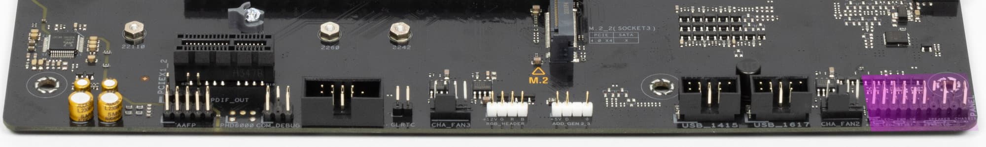 Почему же не все, а почти все потенциально греющиеся элементы? Как я уже упоминал ранее, лишь первый M.2_1 слот имеет отдельный радиатор, а второй слот M.2_2 — без охлаждения.