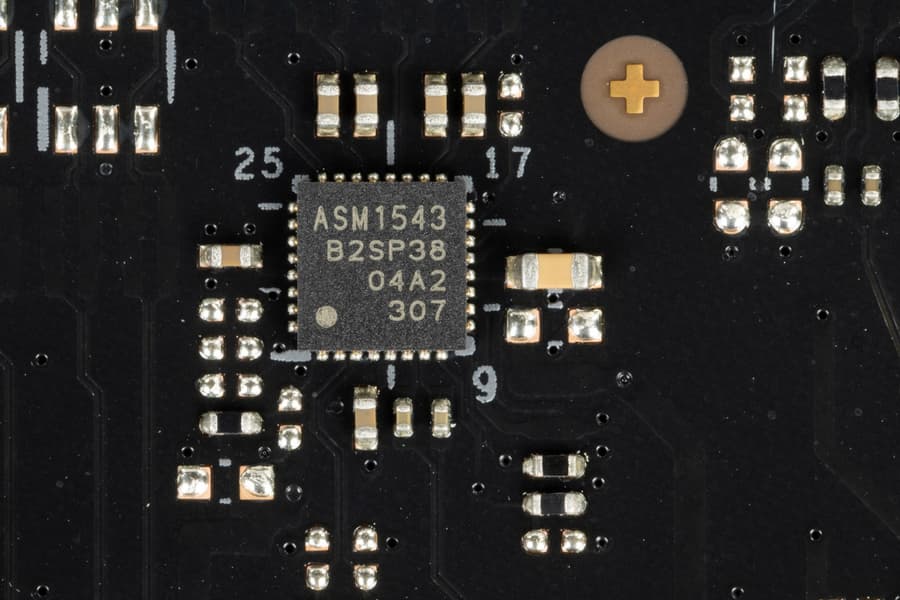 Поскольку имеются переключения работы слотов PCIe x16_2 и PCIe x1_1/2, то востребованы мультиплексоры от ASMedia.