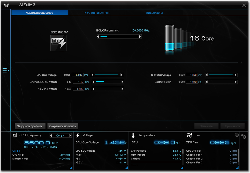 Запускаем все в режиме по умолчанию. Затем нагружаем стандартными стресс-тестами OCCT.