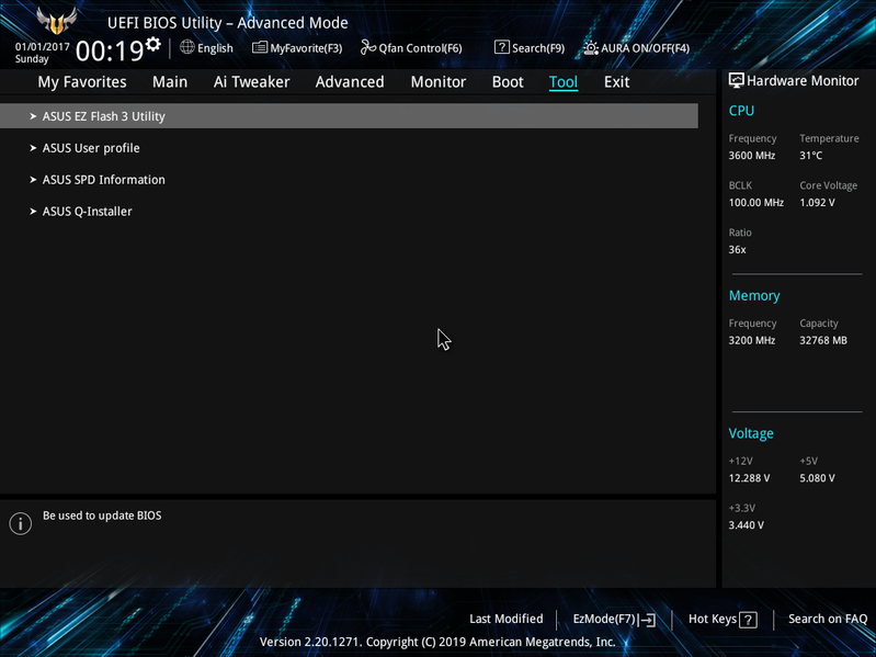 В разделе Tools собраны уже обслуживающие утилиты: обновление прошивки BIOS (как через интернет, так и через чтение с «флешки»), запись всех настроек в свои профили, справочники по настройкам. Включить и отключить подсветку на самой плате можно здесь же нажатием F4.