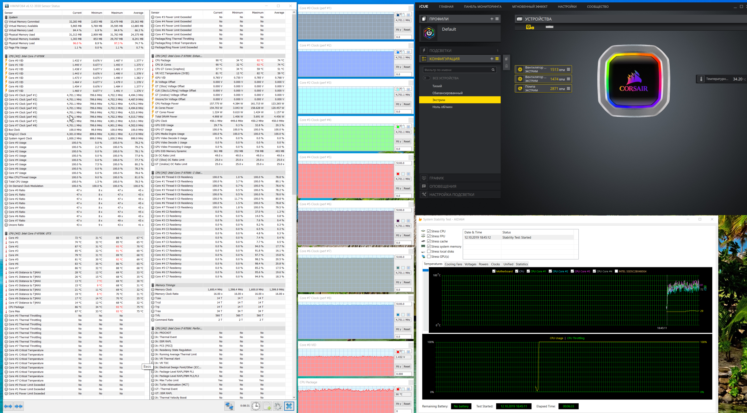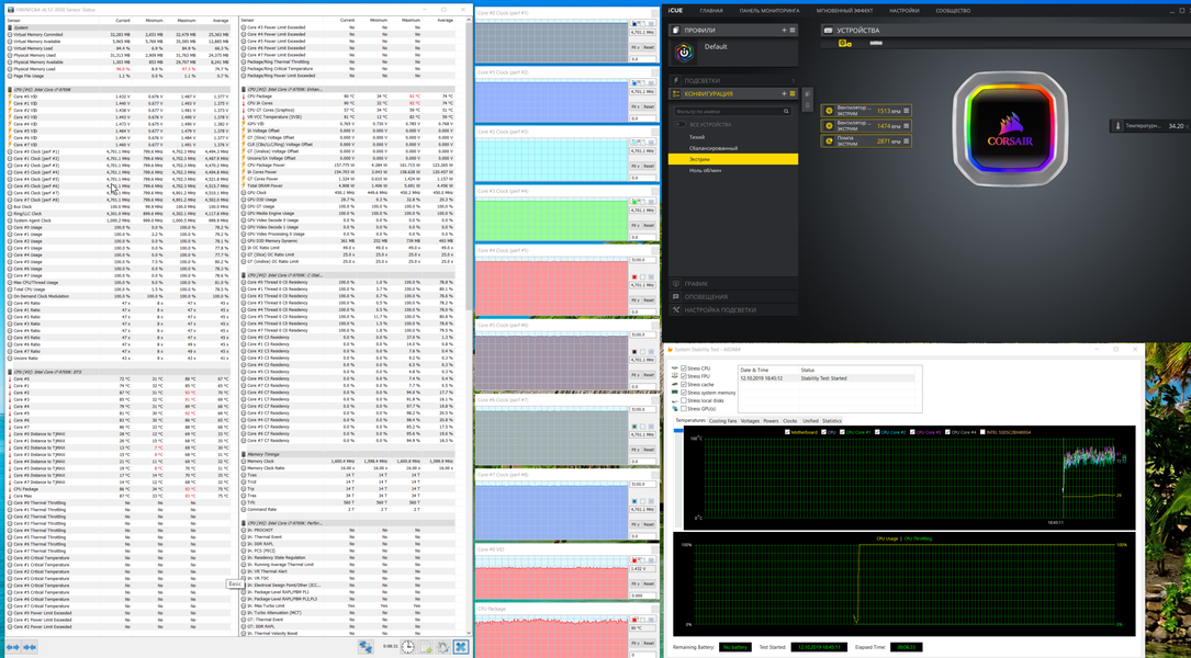 Собственно, это уже неплохо. Все стресс-тесты такой оверклокинг прошел. Надо сказать, что в режиме работы по умолчанию (без разгона) частоты по ядрам скачут от 3,6 до 4,7 ГГц. Да, бывает и 4,8, но редко и на одном ядре. В принципе, и 4,7 ГГц TurboBoost ставит также на 1-2 ядрах. А тут все же получили такую же частоту на всех ядрах.