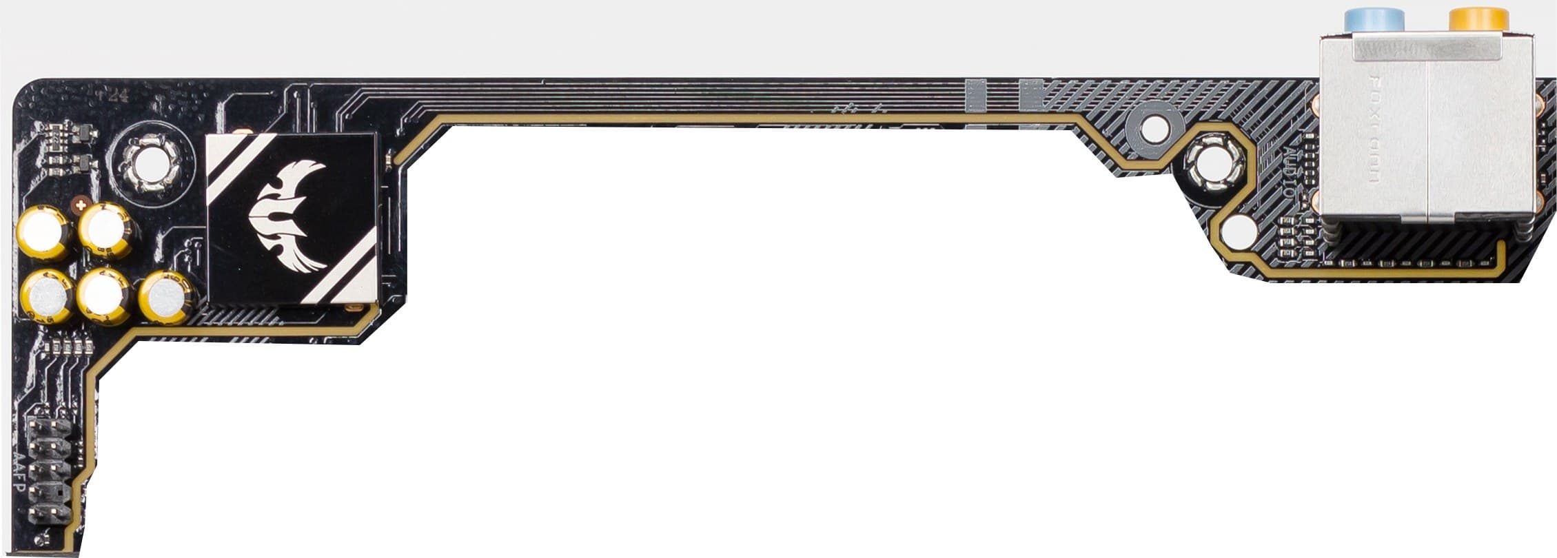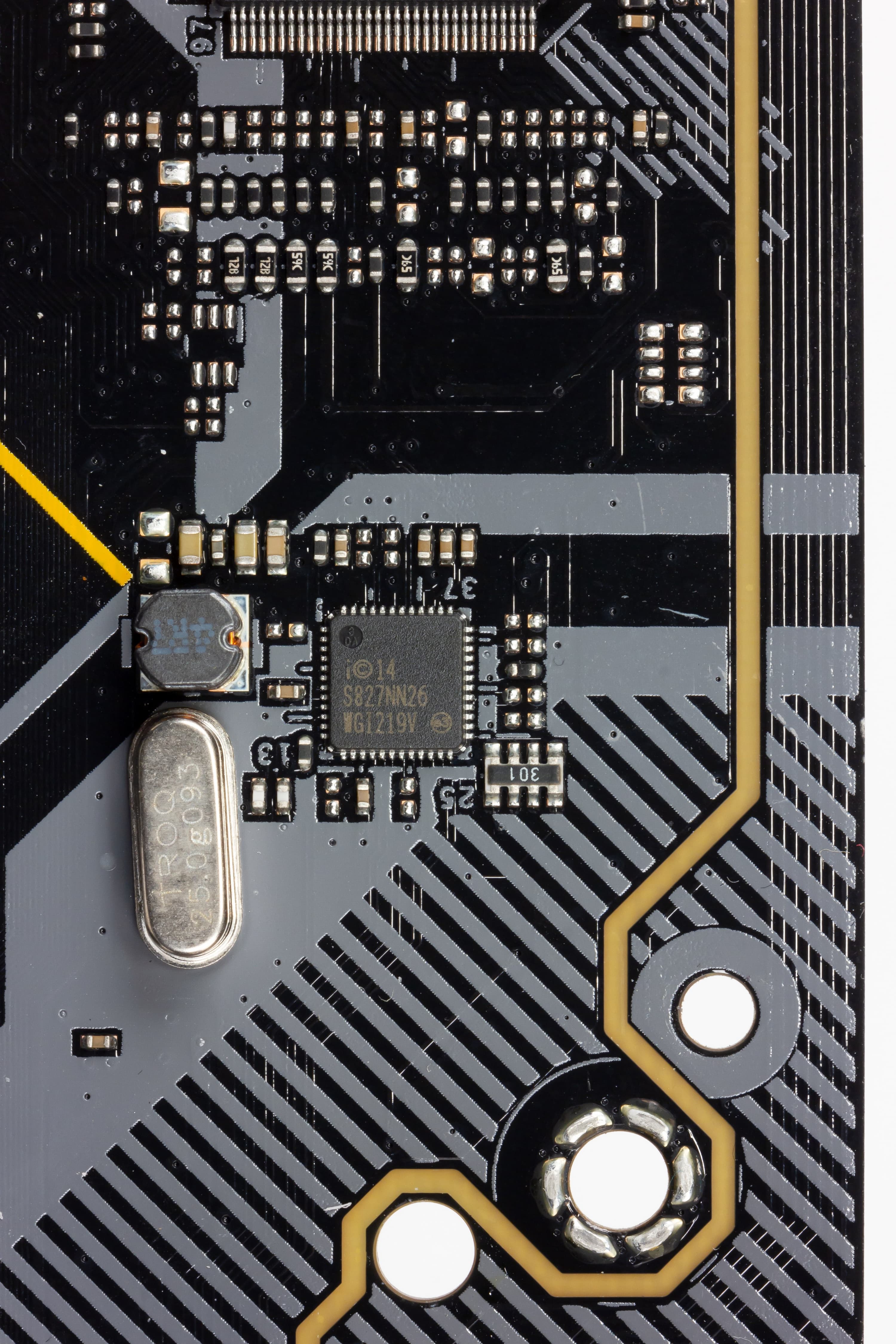 Традиционно поддерживаемый системным чипсетом сетевой гигабитный контроллер Intel GigaPHY i219V нашел свое место и на этой плате.