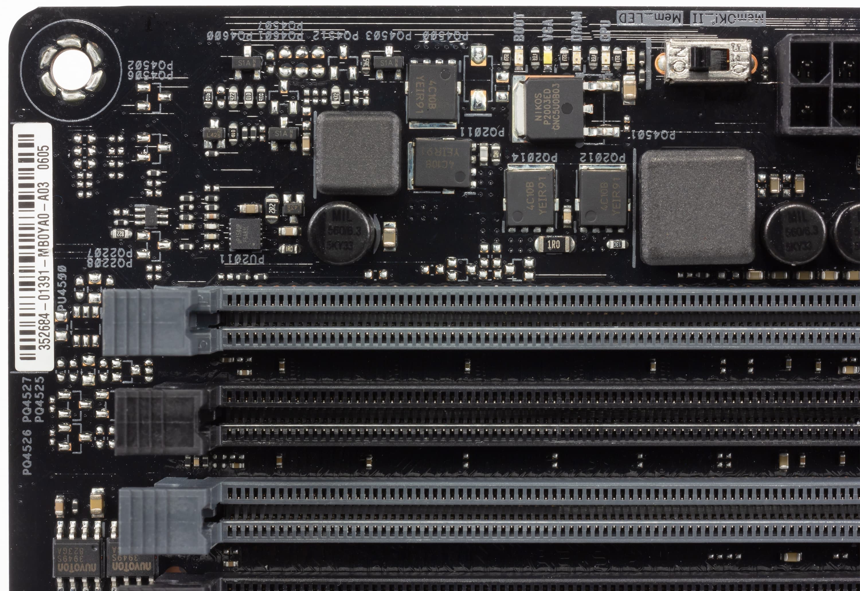 Распределением линий PCI-E между слотами в случае использования более одной видеокарты занимаются мультиплексоры ASM1480 от ASMedia.