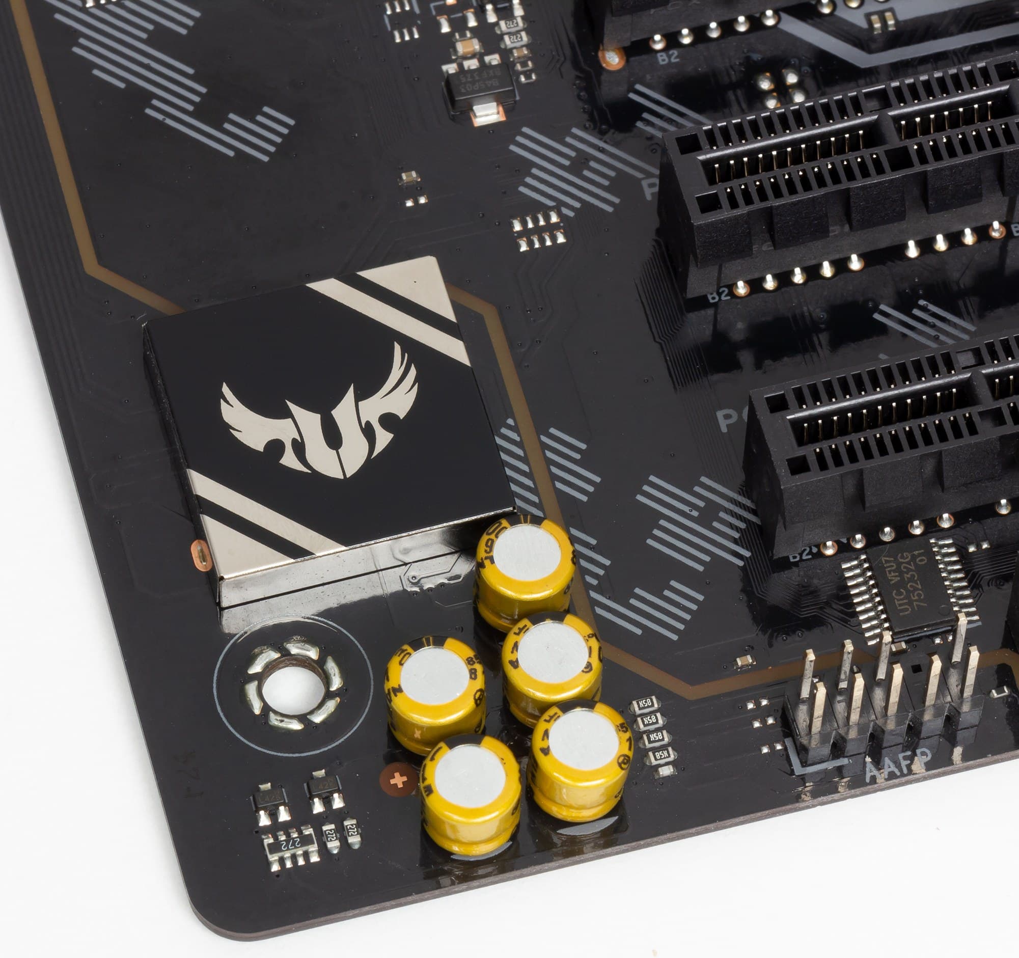 Чипсет имеет большой радиатор этакой в целом треугольной формы со стилистическими вырезами и является составной частью общего дизайна TUF Gaming (также в него встроена подсветка логотипа серии).