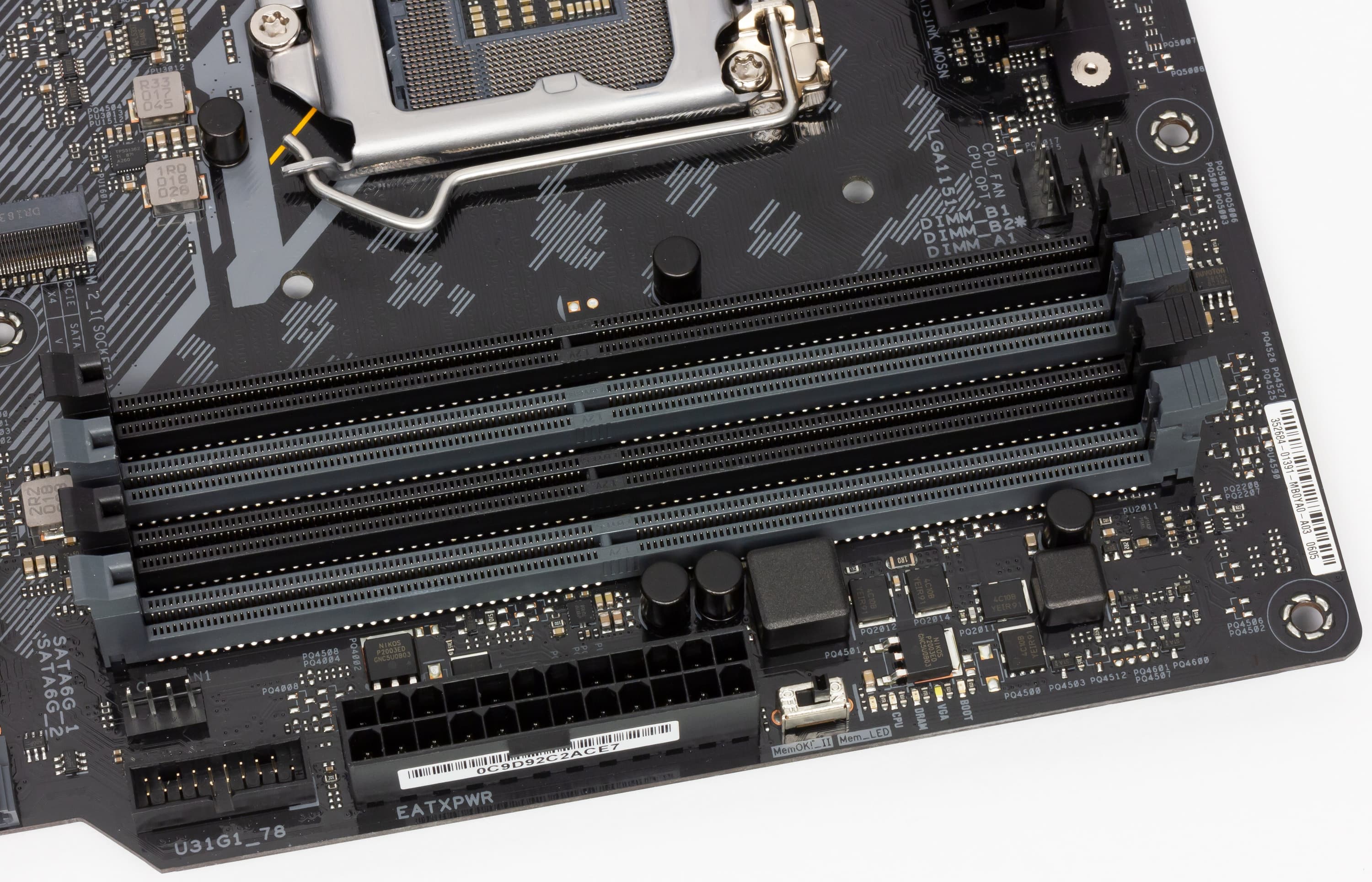 Для установки модулей памяти на плате Asus имеется четыре DIMM-слота (для работы памяти в Dual Channel в случае использования всего 2 модулей их следует устанавливать в А2 и B2. Плата поддерживает небуферизованную память DDR4 (non-EСС), а максимальный объем памяти составляет 128 ГБ (при использовании UDIMM последнего поколения по 32 ГБ). Разумеется, поддерживаются профили XMP.