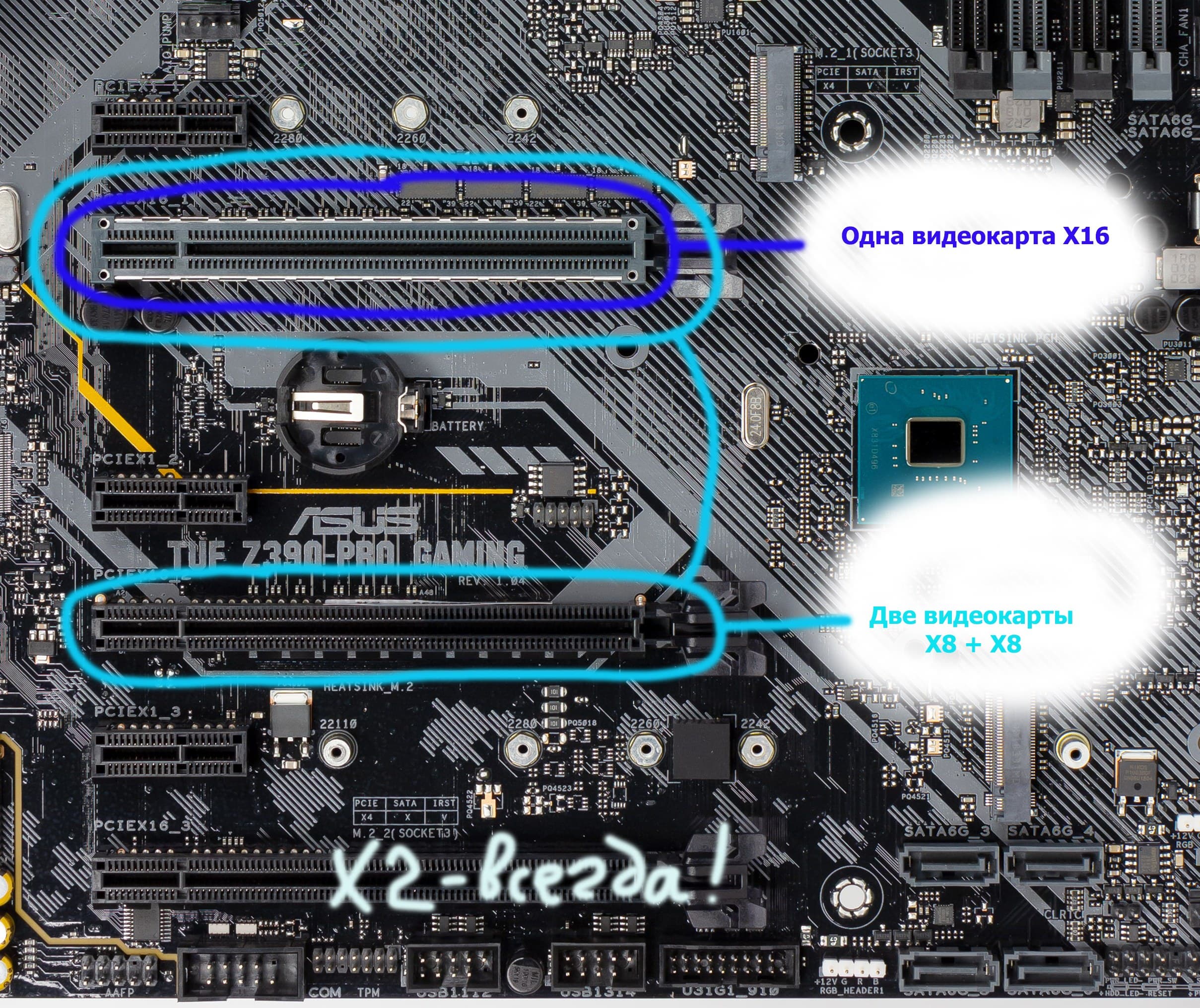То есть полноценно получит 16 линий PCI-E только одиночная видеокарта, а «дуэт» из двух видеокарт в режиме SLI/CrossFire получит по 8 линий на каждый слот. Из-за того, что третий «длинный» слот всегда получает х2, создать «трио» из видеокарт по схеме AMD CrossFire уже не получится. Сильно ли это снижение количества линий на каждый слот ударит по производительности в целом? Ощутимо, но не так уж сильно.