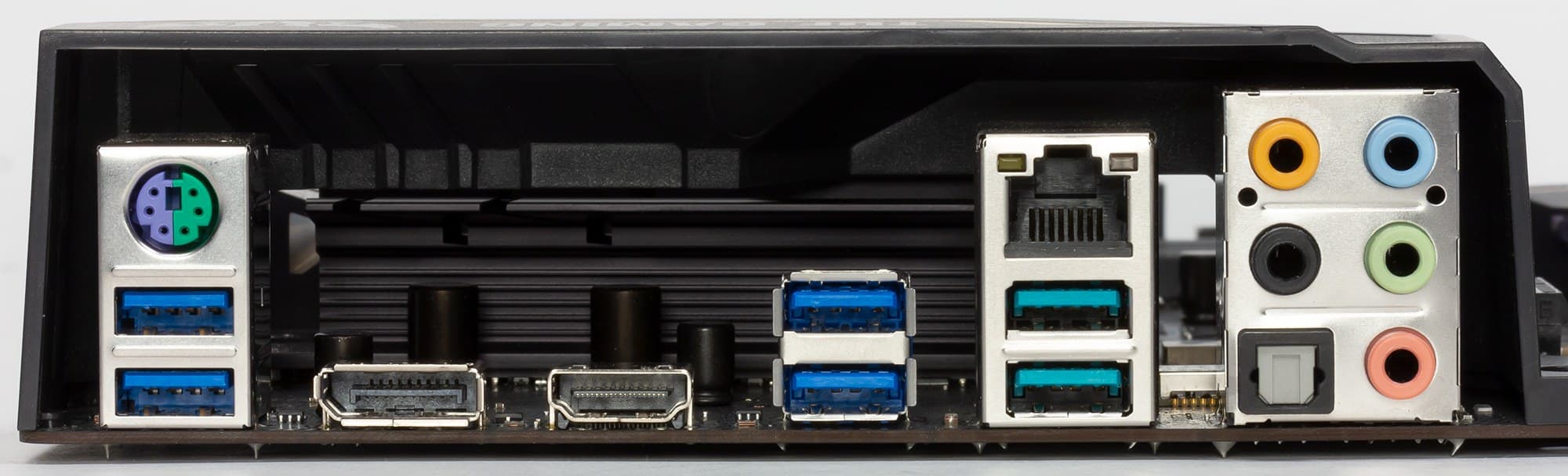 | Разъемы на задней панели | 2 × USB 3.1 Gen2 (Type-A, голубые) 4 × USB 3.1 Gen1 (Type-A, синие) 2 × RJ-45 1 × PS/2 5 аудиоразъемов типа миниджек 1 × S/PDIF (оптический, выход) 1 × HDMI 1.4 1 × DisplayPort 1.2 |