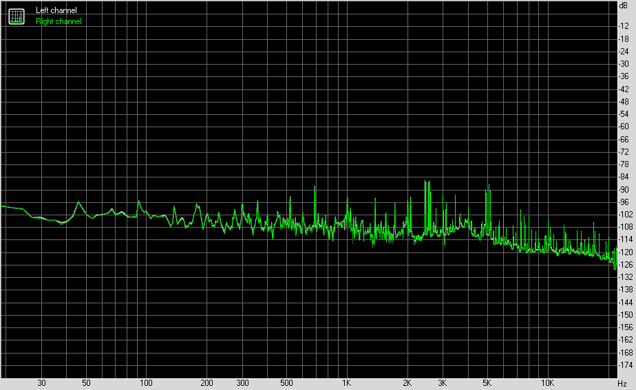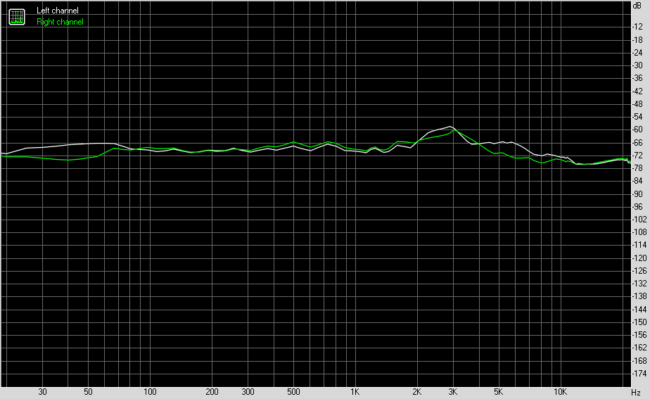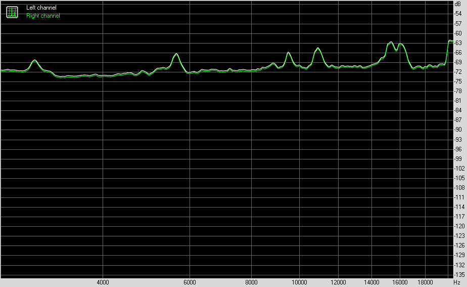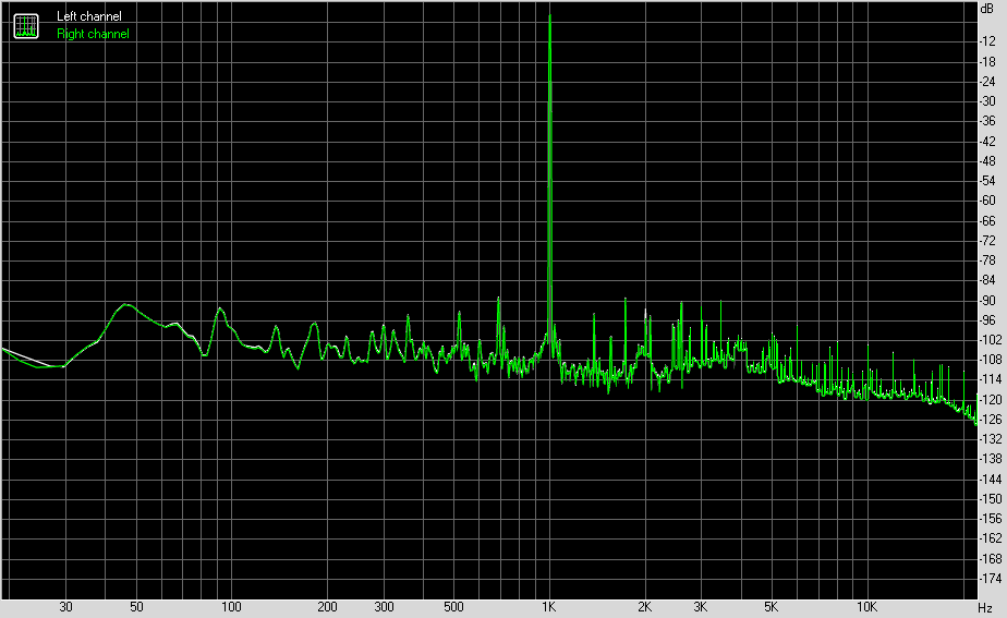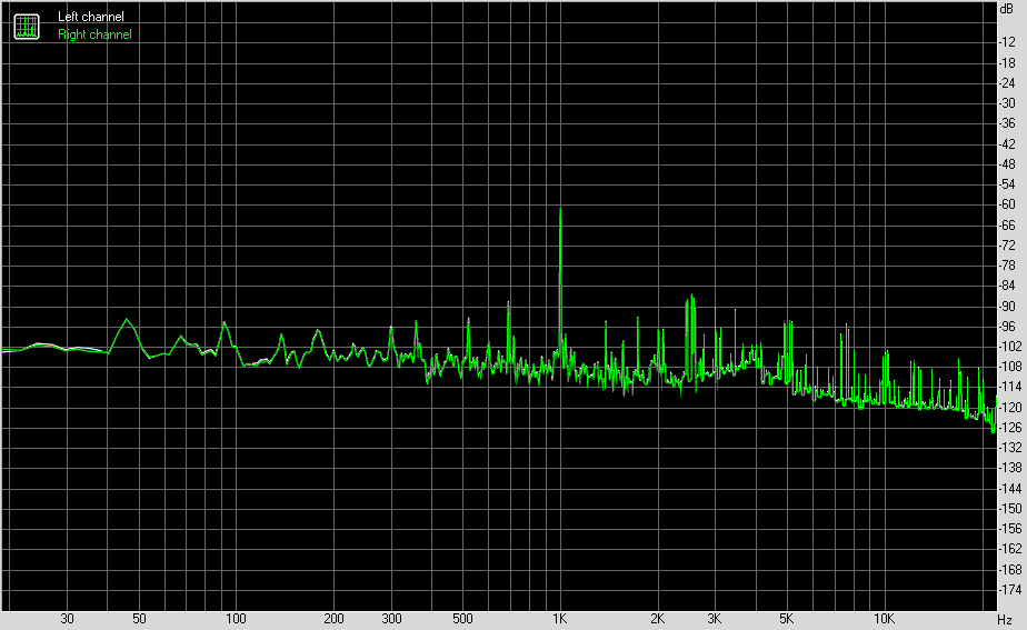 Для тестирования выходного звукового тракта, предназначенного для подключения наушников или внешней акустики, мы использовали внешнюю звуковую карту Creative E-MU 0202 USB в сочетании с утилитой RightMark Audio Analyzer 6.4.5. Тестирование проводилось для режима стерео, 24 бит/44,1 кГц. По результатам тестирования аудиотракт на плате получил оценку «Хорошо».