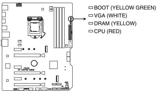 Принцип действия прост: тот или иной светодиод загорается при инициализации, затем в случае успешного теста он гаснет. То есть, если все 4 светодиода в процессе запуска/загрузки погасли, то все в порядке.