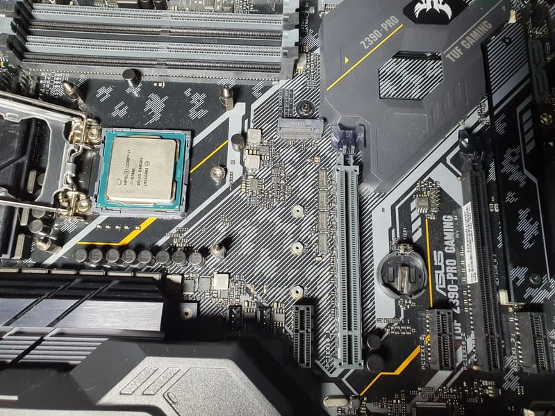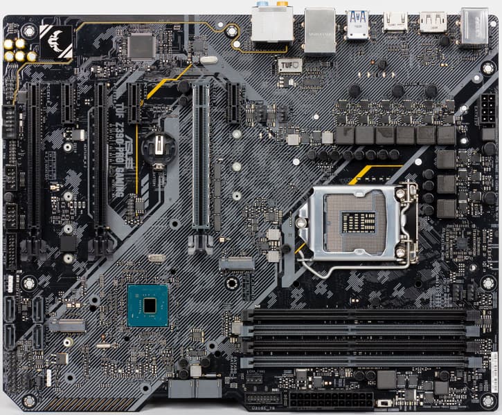 Как и все аналоги на Z390, Asus TUF Z390-Pro Gaming поддерживает процессоры Intel Core 8-го и 9-го поколений, выполненные под разъем (сокет) LGA1151v2. Хотя физически отличий от старого LGA1151 нет, старые процессоры в LGA1151 v2 работать не будут. Поэтому еще раз напомню: только модели с индексами 8000 и 9000!