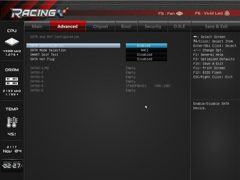 Настройка SATA-контроллера возможна лишь самая примитивная, отключать отдельные SATA-порты нельзя.