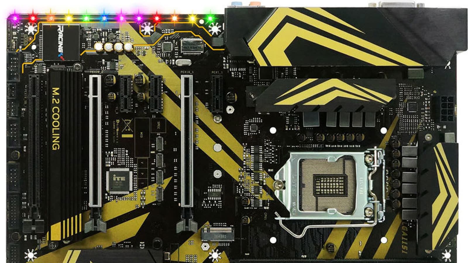 Следующая дополнительная особенность платы — это реализация RGB-подсветки, без которой сегодня не обходится ни одна игровая плата (или, по крайней мере, плата, называемая производителем игровой). В случае Biostar Racing Z370GT6 подсветка представляет собой 12 светодиодных RGB-индикаторов, которые расположены в ряд по заднему краю платы (рядом с панелью разъемов). Ни панель разъемов, ни радиатор чипсета не подсвечиваются. Нет светодиодных индикаторов и с обратной стороны платы.