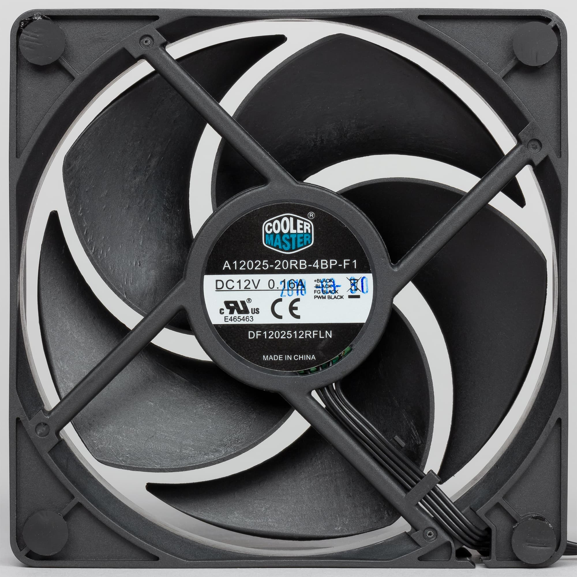 Вентилятор кулера имеет четырехконтактный разъем (общий, питание, датчик вращения и управление ШИМ) на конце кабеля. Кабель просто плоский и не заключен в плетеную оболочку, что очень удобно.