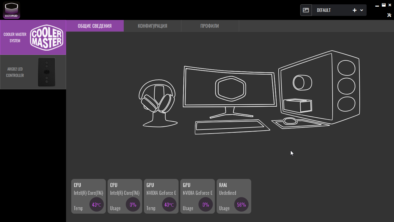 Управлять подсветкой подключенных к контроллеру устройств можно тремя способами: от портов RGB или ARGB на материнской плате, кнопками — на самом контроллере и/или кнопкой Reset (проходное подключение к кнопке на корпусе ПК), а также с помощью ПО Cooler Master MasterPlus (для ПК под Windows). В последнем случае контроллер нужно подключить к USB-порту (к обычному типа A или к колодке на материнской плате). Кнопками на контроллере выбирается режим подсветки, цвет (если применимо) и скорость переключения эффектов (тоже если применимо). Кнопкой Reset можно переключать режимы подсветки, это удобно, если контроллер находится в закрытом корпусе, а другие варианты управления подсветкой недоступны. Краткое нажатие на Reset переключает режимы, а длительное удерживание перезагружает компьютер. Отключение питания не сбрасывает выбранный режим. Режимы подсветки в случае их перебора кнопкой демонстрирует видеоролик ниже: