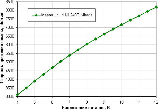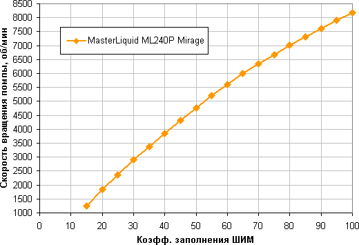 Снижать шум от системы, уменьшая напряжение питания помпы, смысла нет. Скорость вращения помпы можно регулировать, как изменяя КЗ, так и напряжение питания (реальные значения об/мин, видимо, на самом деле в два раза ниже):