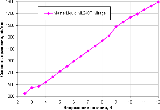 Регулировка с помощью напряжения позволяет получить устойчивое вращение на более низких скоростях. Вентиляторы останавливаются при снижении напряжения до 2,0 В и запускаются от 2,1/2,9 В. В случае необходимости вентиляторы допустимо подключать к 5 В.