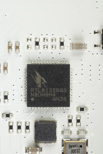 Материнская плата оснащена средствами связи хорошо. Имеется скоростной Ethernet-контроллер Realtek RTL8125BG, способный работать по стандарту 2,5 Гбит/с.