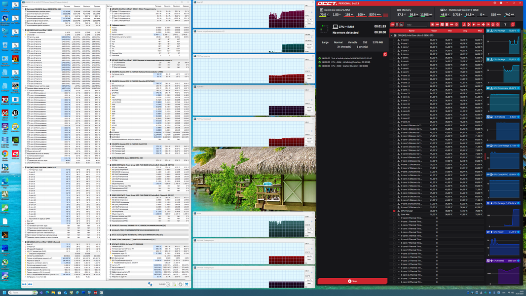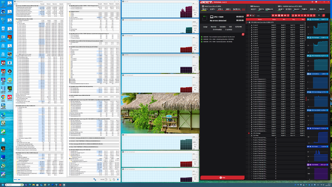 Запускаем все в режиме по умолчанию (в BIOS – профиль от Intel). Затем нагружаем тестами OCCT.