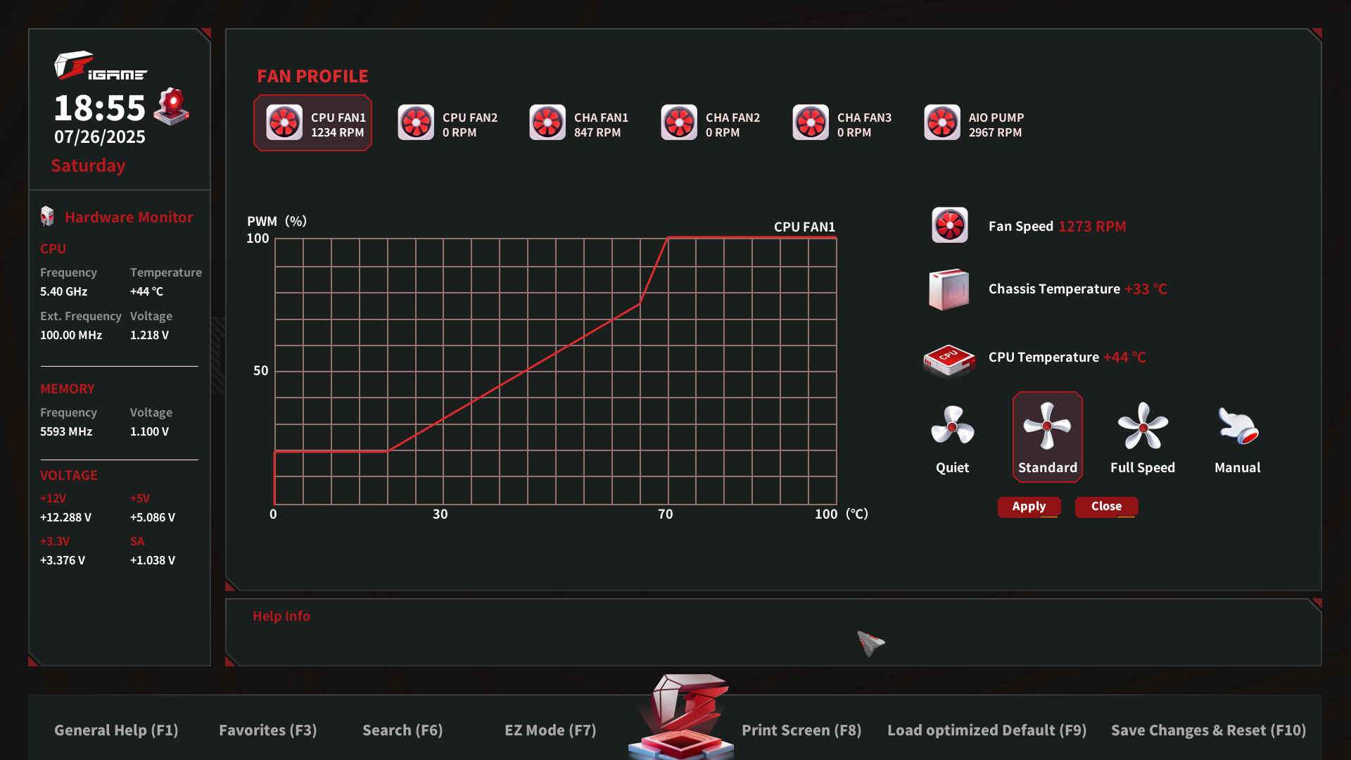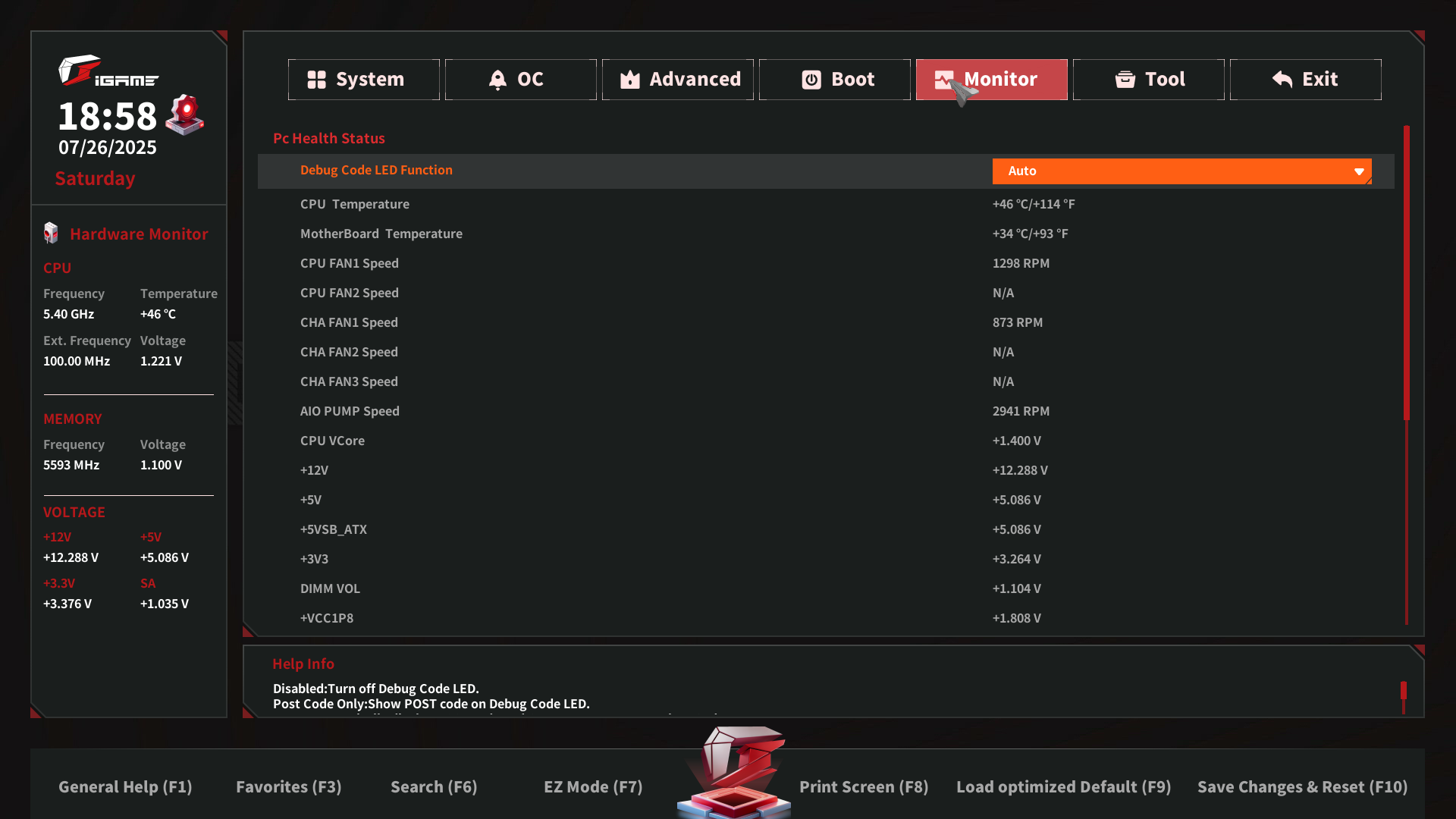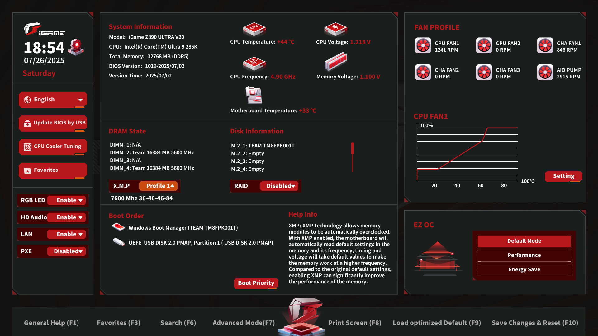 А теперь мы в BIOS активируем профиль Colorful Performance и снова запускаем стресс-тест.