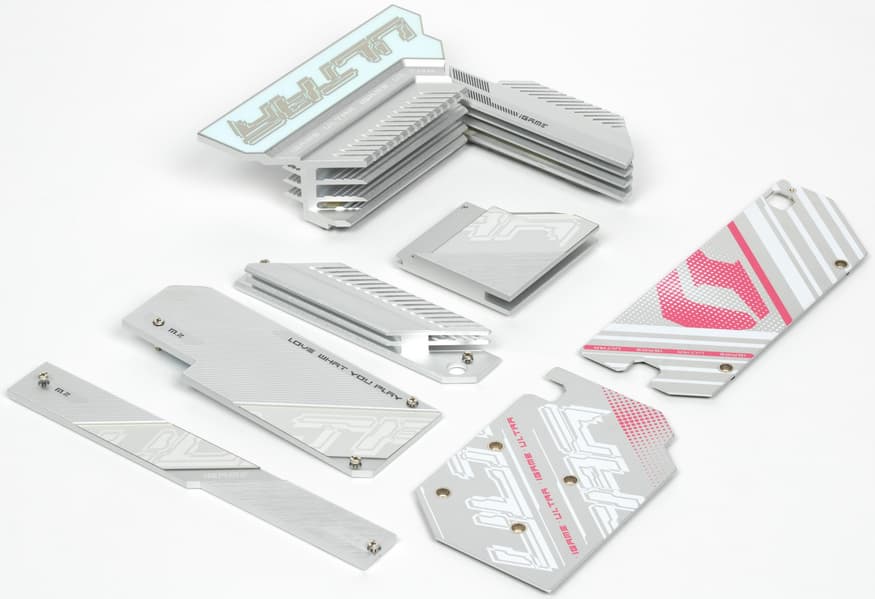 Радиатор VRM, идущий вдоль заднего блока портов, имеет кожух, оснащенный лазерной гравировкой.