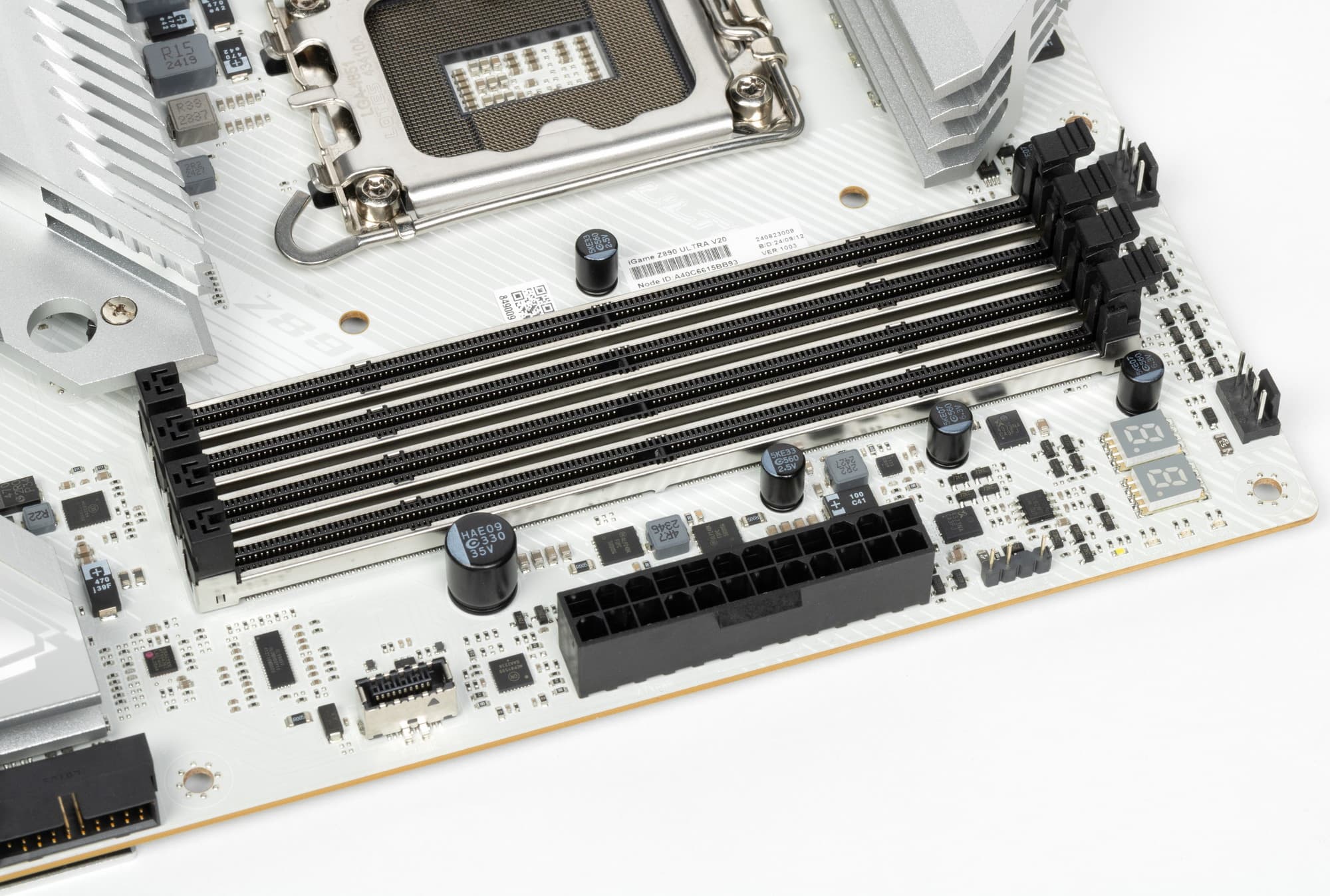 Плата поддерживает небуферизованную память DDR5 (non-EСС), а максимальный объем памяти составляет 256 ГБ. Могут использоваться модули CUDIMM.
