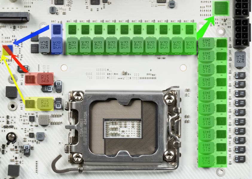 Как видим, перераспределения линий PCIe 5.0 на этой материнке нет, поэтому мультиплексоры не востребованы.