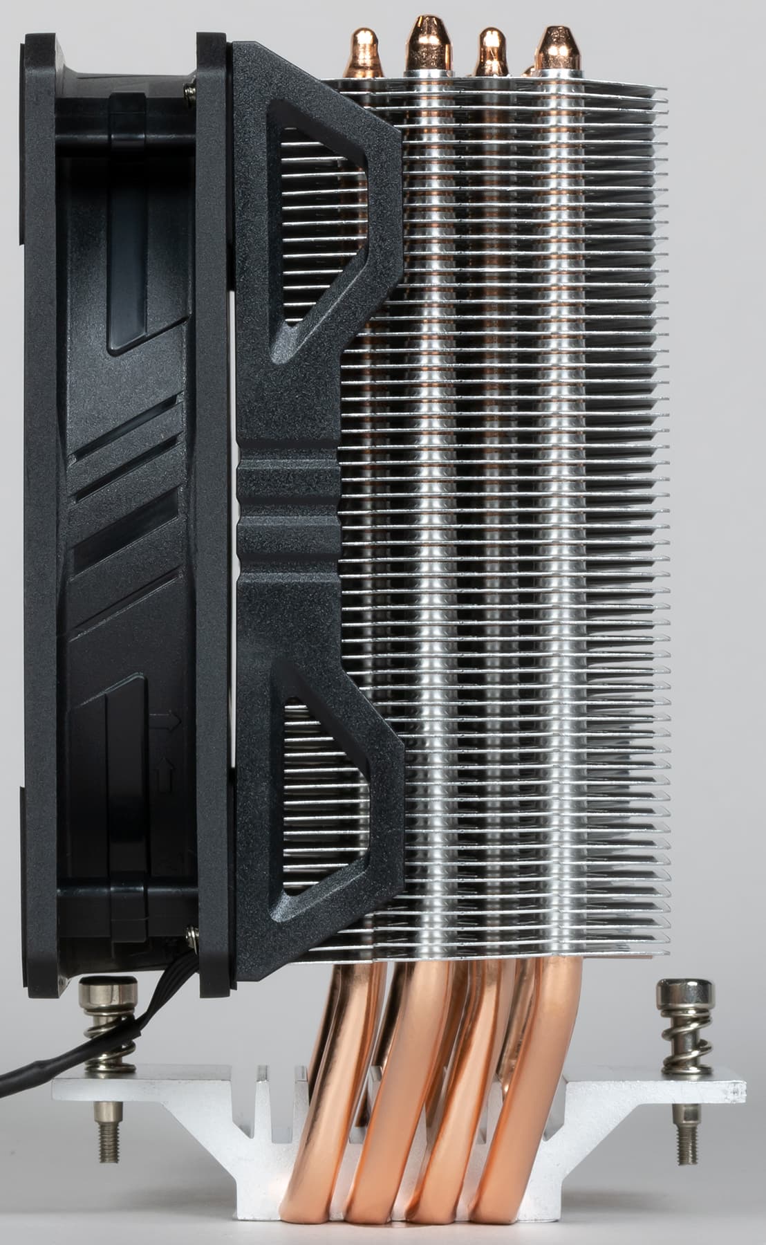 | Материал радиатора | пластины из алюминия (0,4 мм толщиной) и медные тепловые трубки (4 шт. ∅6 мм, прямой контакт с крышкой процессора) |