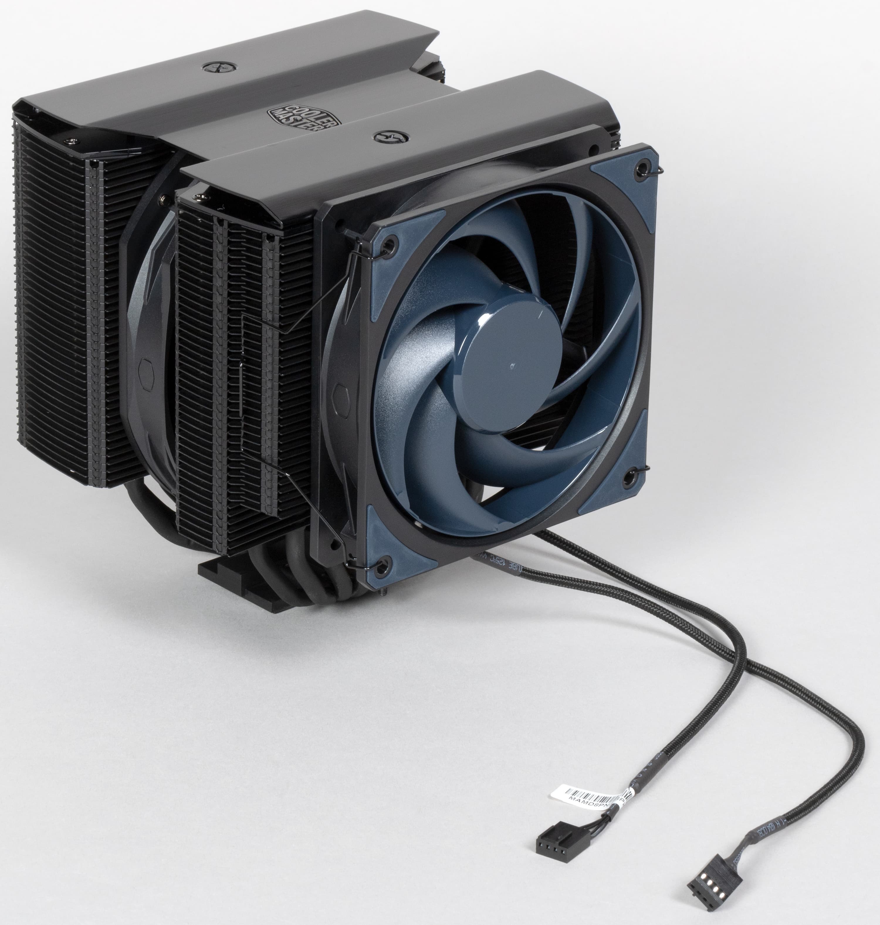 Кулер оснащен вынесенным двойным радиатором, к которому тепло от теплосъемника передается по восьми тепловым трубкам диаметром 6 мм. Трубки и нижняя часть теплосъемника медные. Трубки, нерабочая поверхность теплосъемника, пластины радиатора имеют черное матовое лакокрасочное покрытие. Верхняя часть теплосъемника изготовлена, по всей видимости, из алюминиевого сплава. Трубки к теплосъемнику припаяны. Подошва теплосъемника имеет очень мелкую концентрическую проточку и слегка отполирована. Поверхность подошвы немного выпуклая к центру с перепадом порядка 0,2 мм.