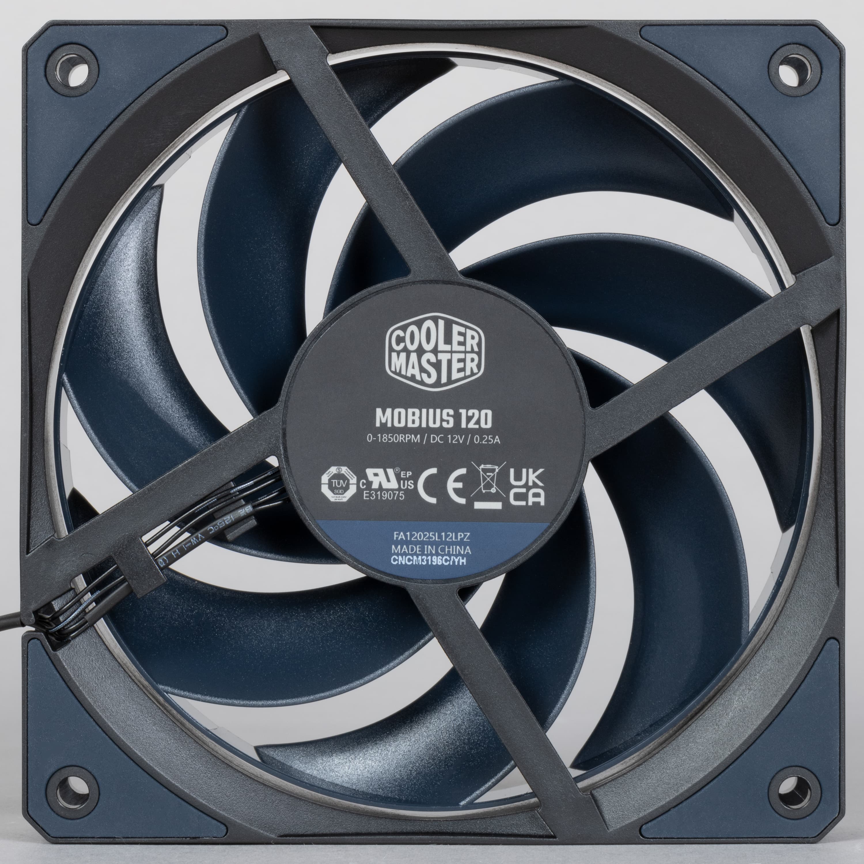 Типоразмер комплектных вентиляторов — 135 мм (центральный) и 120 мм (внешний). Внешний вентилятор работает на вдув и крепится типичными стальными скобками.