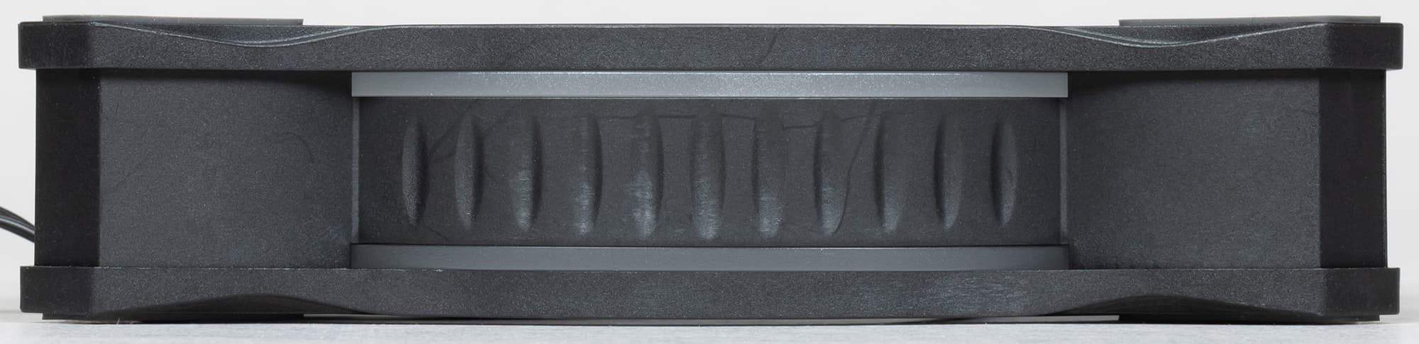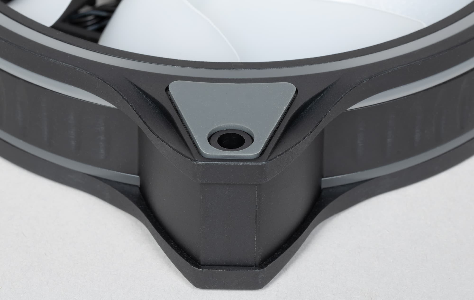 Между частями рамки есть две кольцевые вставки из белого полупрозрачного пластика. В свою очередь между вставками находится светодиодная лента с 16 адресуемыми многоцветными светодиодами (ARGB). Крыльчатка вентилятора также изготовлена из белого полупрозрачного пластика и снаружи слегка заматирована. На статоре вентилятора по окружности размещены еще восемь ARGB-светодиодов, которые подсвечивают крыльчатку изнутри.