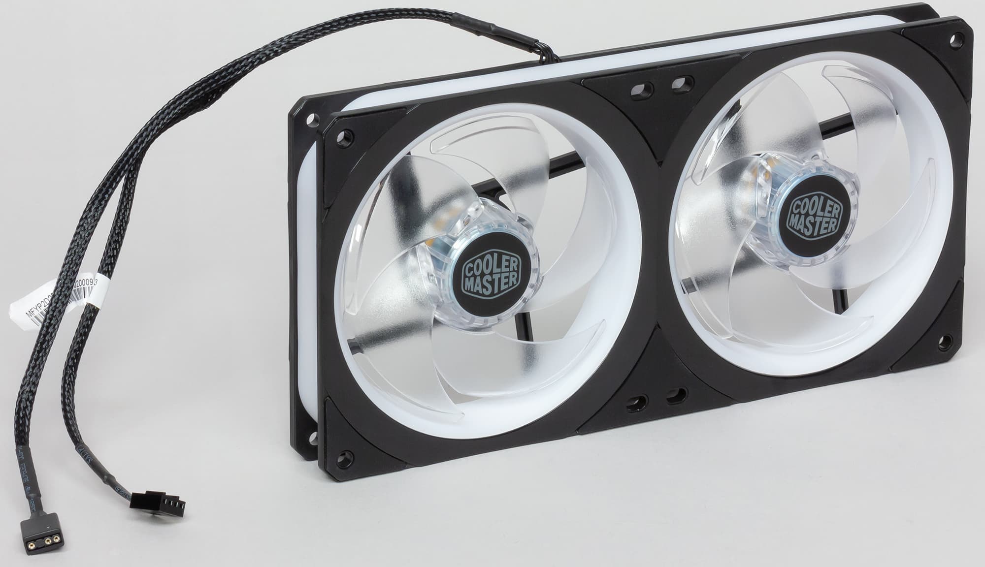 Для демонстрации работы подсветки мы использовали контроллер от системы жидкостного охлаждения Cooler Master Masterliquid ML360P Silver Edition. Вроде бы это очевидно, но все же уточним, что именно за эффекты отвечает то устройство управления подсветкой, к которому подключен вентилятор. Оценивать нужно характер свечения, хотя видео все же не совсем адекватно передает то, что видно глазами.