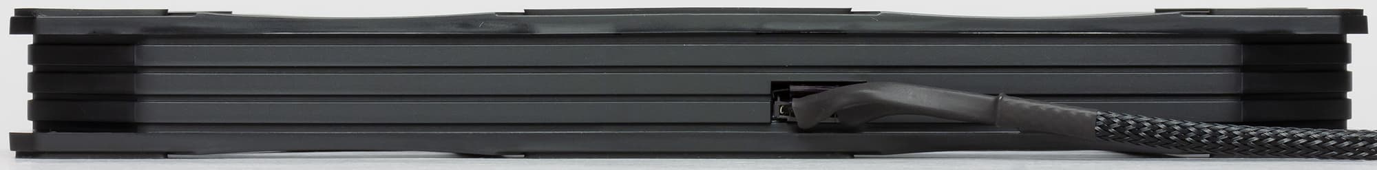 Кабель питания и кабель подсветки заключены в плетеную оболочку из скользкого пластика. Вентилятор поддерживает регулировку с помощью ШИМ. Примечательно, что у этого вентилятора кабели отсоединяемые, жалко только, что разъем на самом вентиляторе не часто встречающийся.