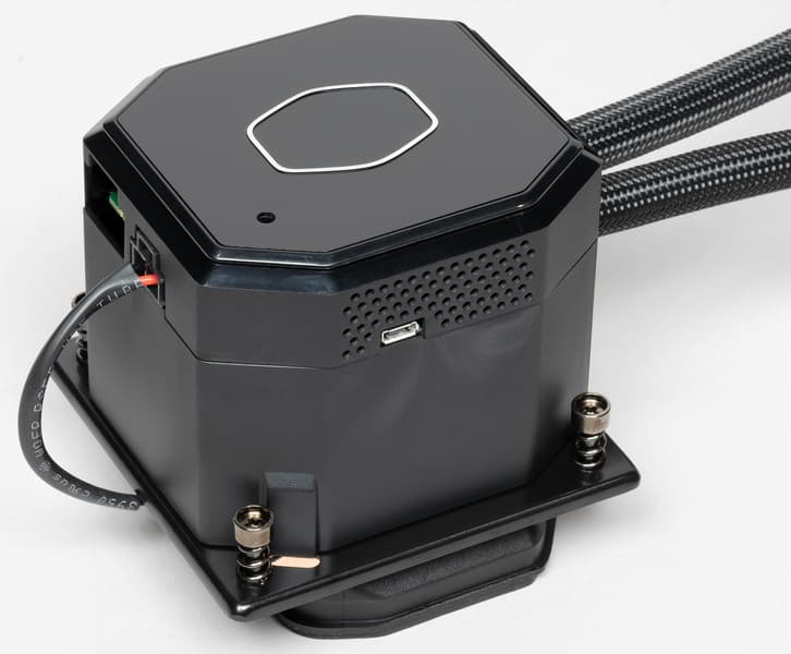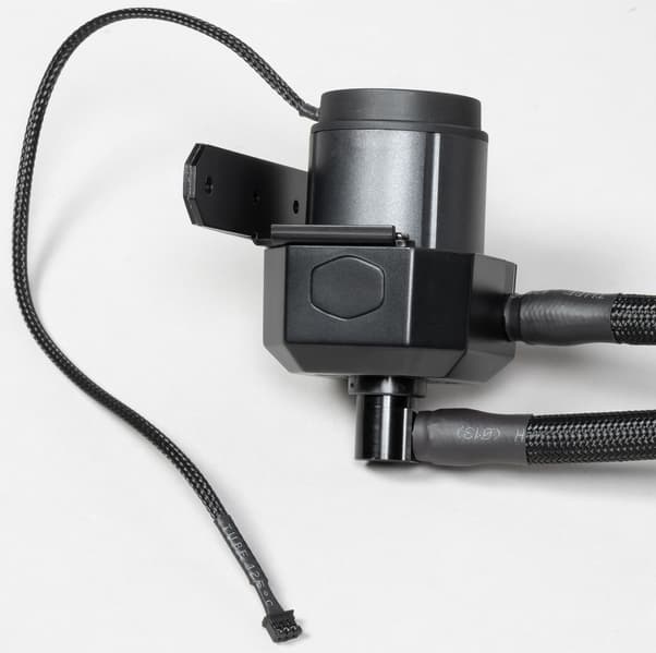 Система герметичная, заправлена, готова к использованию. Помпа у данной системы выполнена в виде отдельного блока. Предполагается, что она будет устанавливаться на штатные места для крепления вентиляторов типоразмера 120 мм, для чего на помпе закреплен кронштейн с резьбовыми отверстиями и резиновой прокладкой на посадочной плоскости, а в комплект поставки входят два винта М5.
