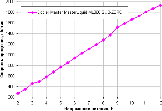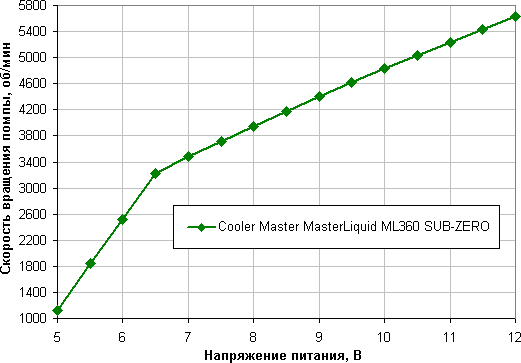 Помпа останавливается при снижении напряжения до 4,6 В и запускается от 5,7 В. Получается, что помпу лучше не подключать к 5 В. Уровень шума только от помпы, когда она работает на максимальной скорости, высокий, поэтому создать очень тихую или условно бесшумную систему на основе этой СЖО невозможно, однако можно снизить уровень шума до приемлемой величины, снижая напряжение питания помпы и вентиляторов — но только до уровня, при котором сохраняется достаточная охлаждающая способность. Для вентиляторов также можно использовать управление с помощью ШИМ.