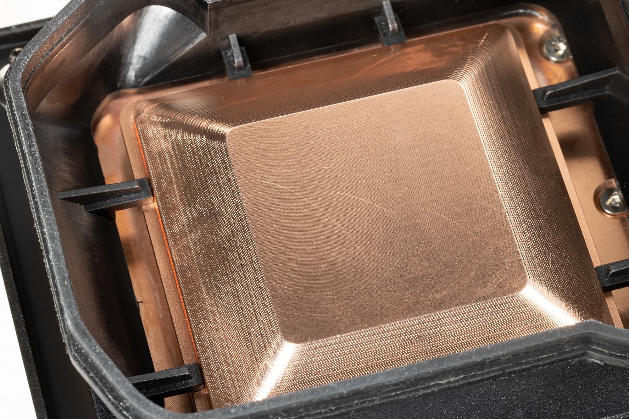 Габариты контактного участка — 31×31 мм. Отметим, что в тестах использовалась качественная термопаста другого производителя. Забегая вперед, продемонстрируем распределение термопасты после завершения всех тестов. На процессоре Intel Core i9-11900K: