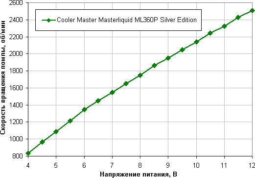 Уровень шума только от помпы равен примерно 17,5 дБА. Помпа работает очень тихо. Приведем зависимость уровня шума только помпы от напряжения.