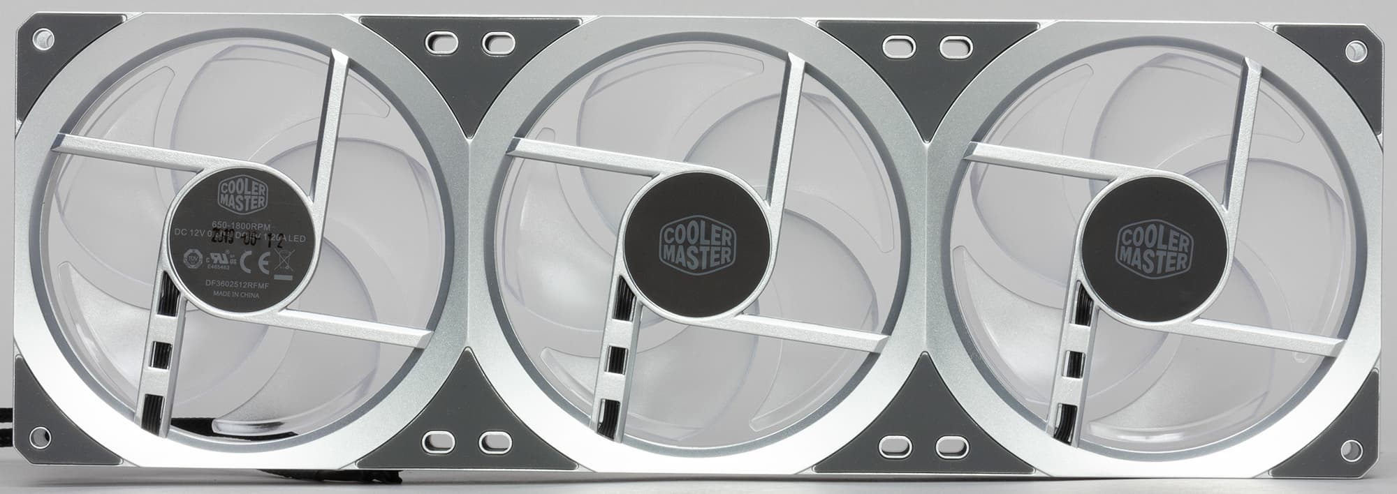 Крыльчатки вентиляторов изготовлены из прозрачного пластика и снаружи слегка заматированы. На статорах вентиляторов по окружности размещены восемь адресуемых RGB-светодиодов, которые подсвечивают крыльчатку изнутри.