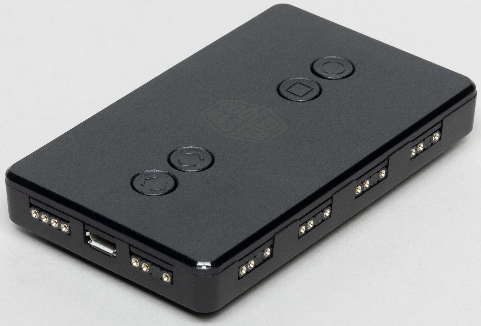 Управлять подсветкой подключенных к контроллеру устройств можно несколькими способами: от портов RGB или ARGB на материнской плате, кнопками — на самом контроллере и/или кнопкой Reset (проходное подключение к кнопке на корпусе ПК). С ПО Cooler Master MasterPlus (для ПК под Windows) данный контроллер не совместим, подключение к USB-порту (к обычному типа A или к колодке на материнской плате) используется только для обновления прошивки контроллера. Кнопками на контроллере выбирается режим подсветки, цвет (если применимо) и скорость переключения эффектов (тоже если применимо). Кнопкой Reset можно переключать режимы подсветки, это удобно, если контроллер находится в закрытом корпусе, а другие варианты управления подсветкой недоступны. Краткое нажатие на Reset переключает режимы, а длительное удерживание перезагружает компьютер. Отключение питания не сбрасывает выбранный режим. Режимы подсветки в случае их перебора кнопкой демонстрирует видеоролик ниже: